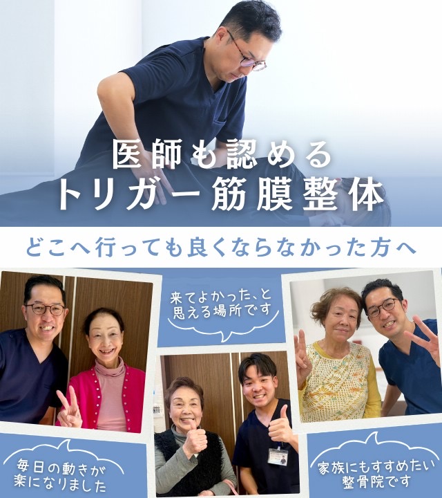 トリガーポイントや筋膜といったレントゲンには写らない真の原因を専門的な知識で探り当て、確かな技術で取り去ります。