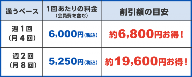 通うペース別の料金目安